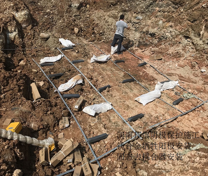 預(yù)包裝鎂合金犧牲陽極埋地液化氣儲罐陰極保護施工 邦信鎂棒安裝